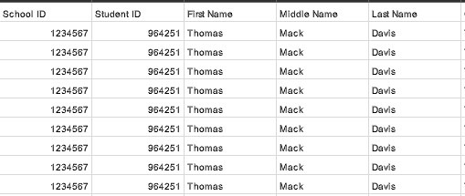 2. School ID that begins with zero - Many spreadsheet programs will remove the initial zero in numbers.