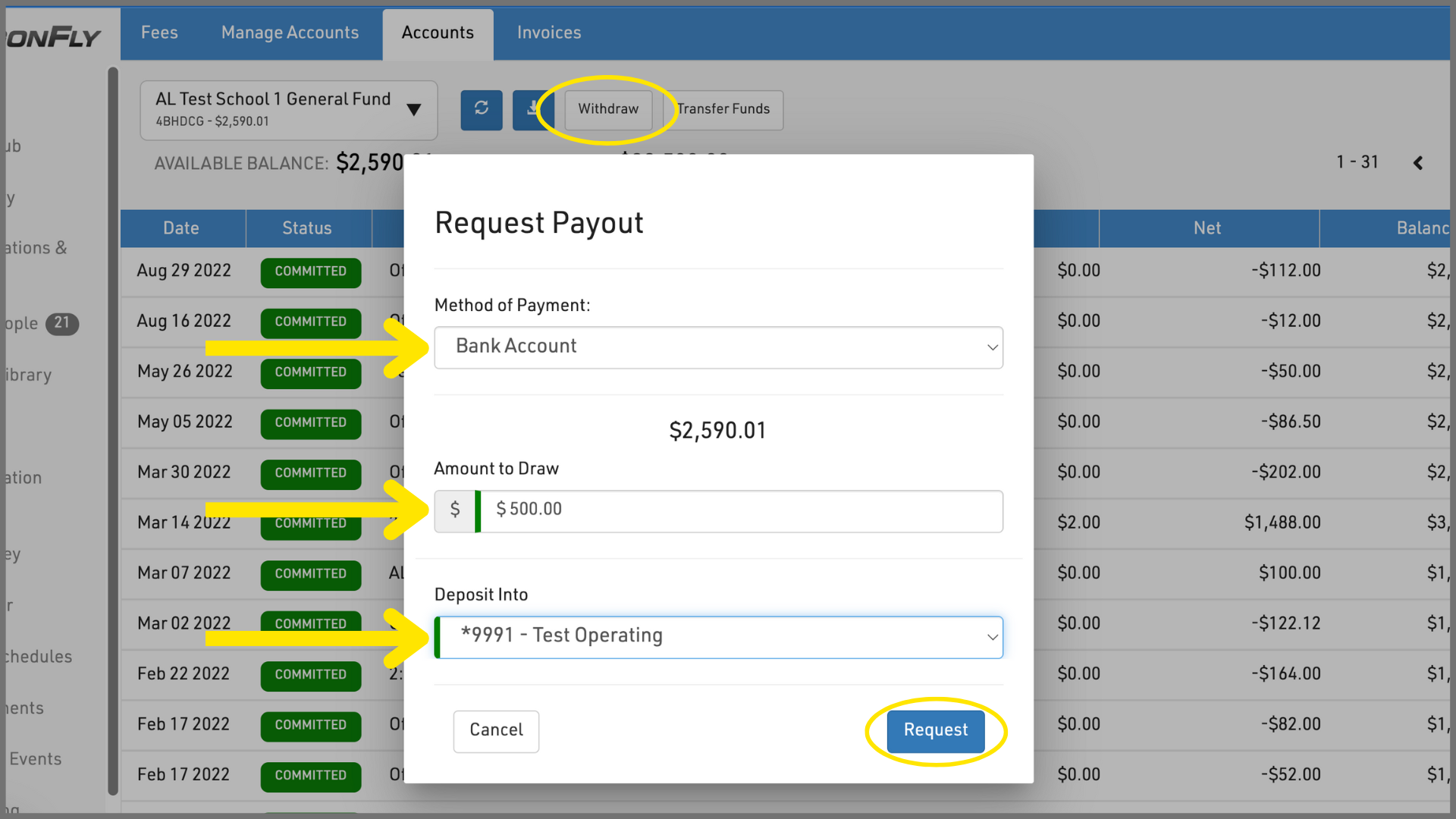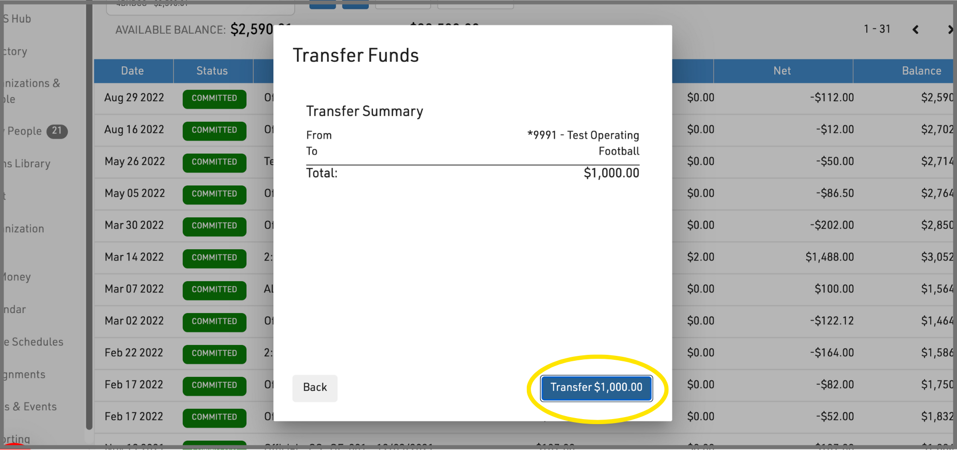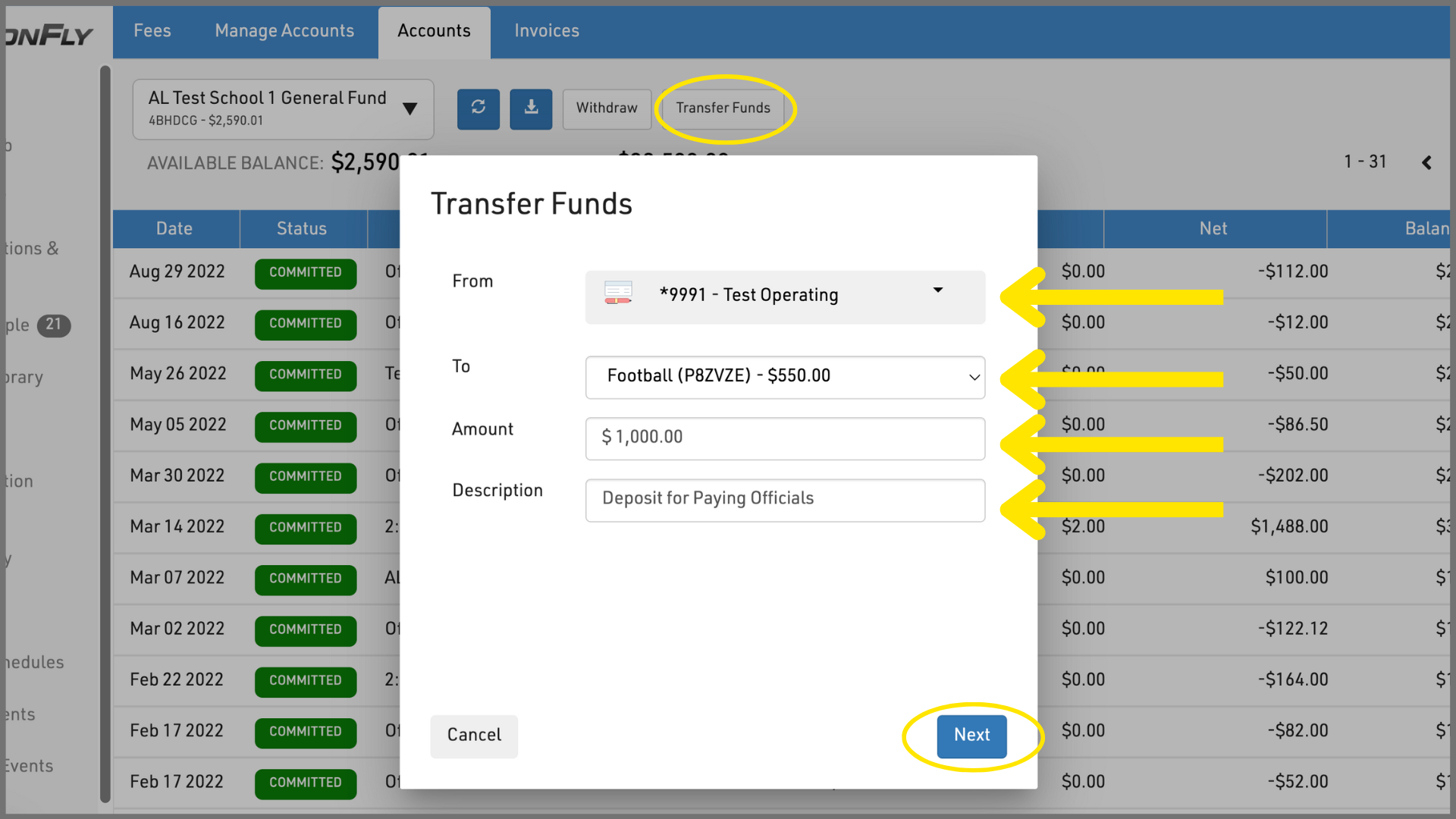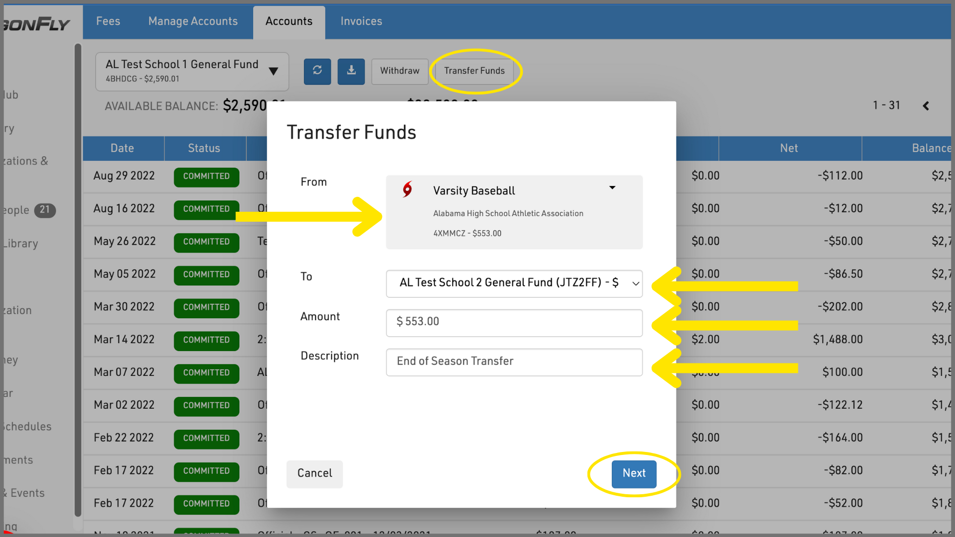 Schools and associations can create up to 20 cash accounts to organize their funds by sport, team, level, school year, etc.