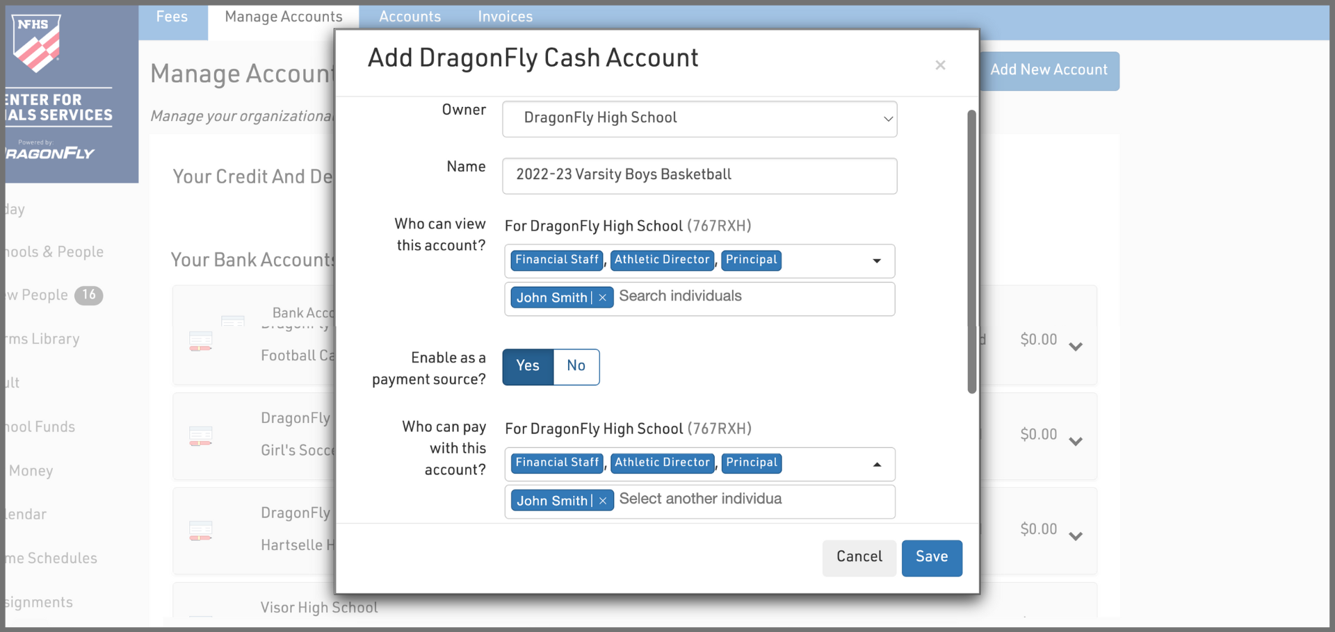Add and Manage a DragonFly Cash Account | DragonFly Athletics Help Center