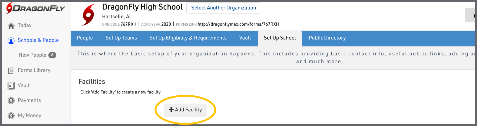 Add Facilities for Your School or Organization | DragonFly Athletics Help Center