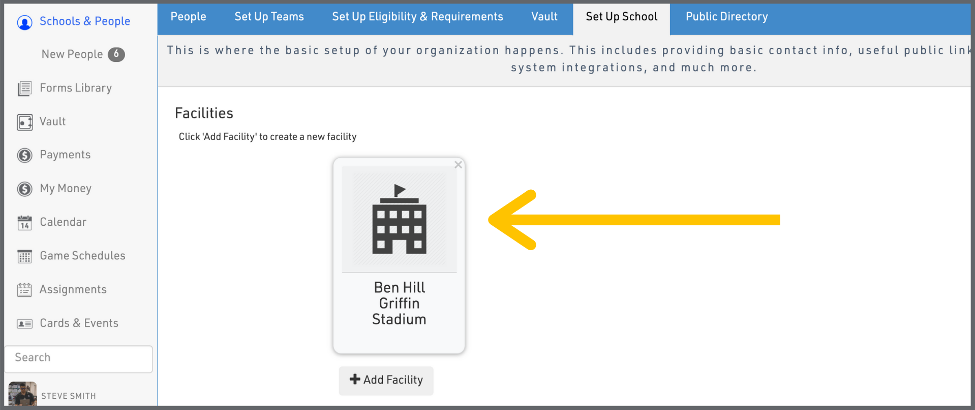 5. You will be redirected to see the facility in your 'Set Up School' page under the 'Facilities' heading.