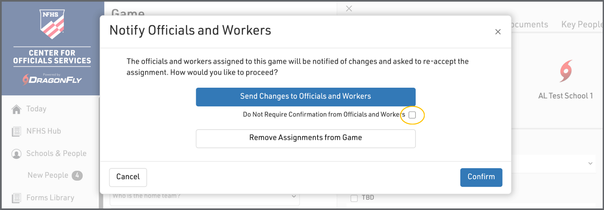 4. If you do not need your officials to accept the updates to the game, select the checkbox next to "Do Not Require Confirmation from Officials and Workers"