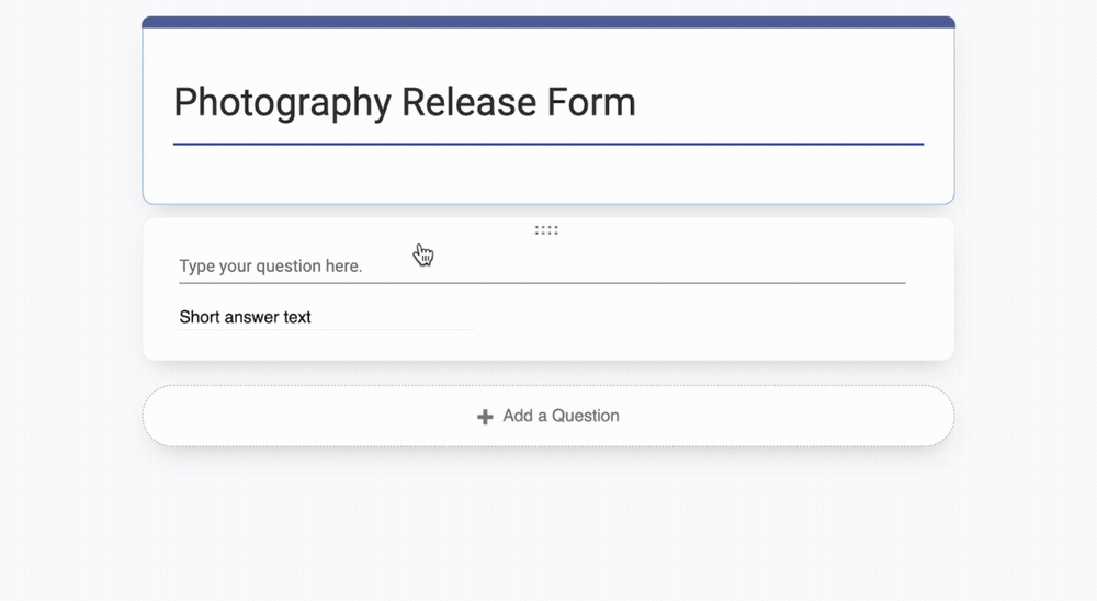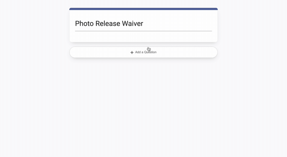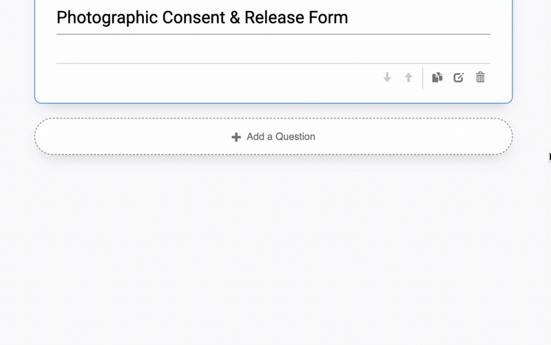 All elements - questions, signatures, information to be read - are added by selecting 'Add A Question'.