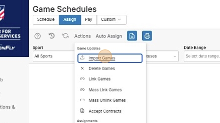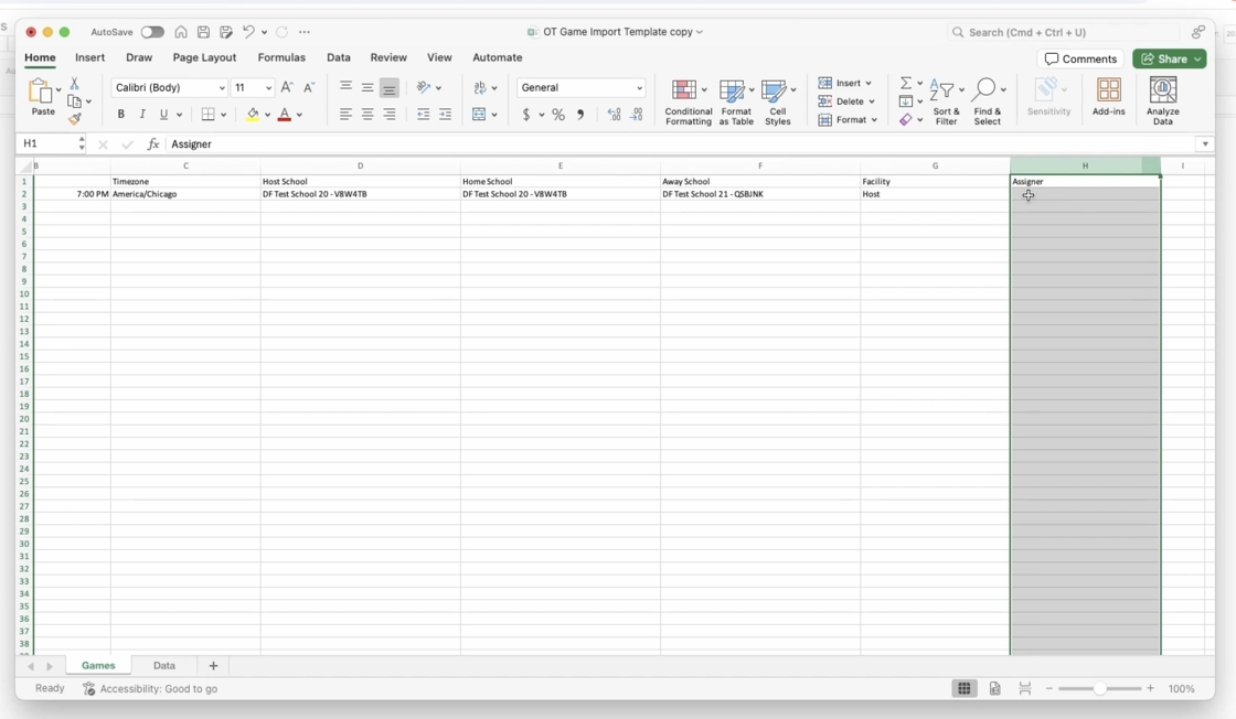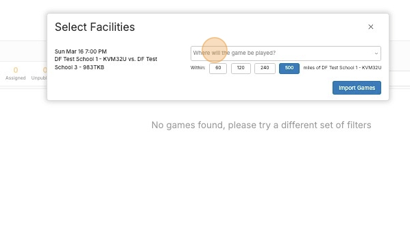 If, in the template document, you selected Custom for any of the games' Facility column, then you'll be prompted to enter that facility on the next window.