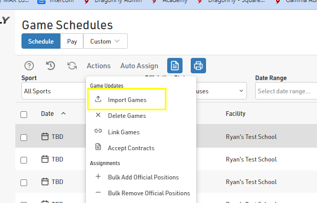 Bulk Import Your Game Schedule | DragonFly Athletics Help Center