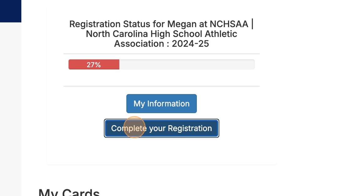 This will take you to your list of eligibility requirements. If you have not already, you should first make sure you have completed your Demographics Information and confirmed your sports for the year. Click on the corresponding button on the right to finish either of these items.