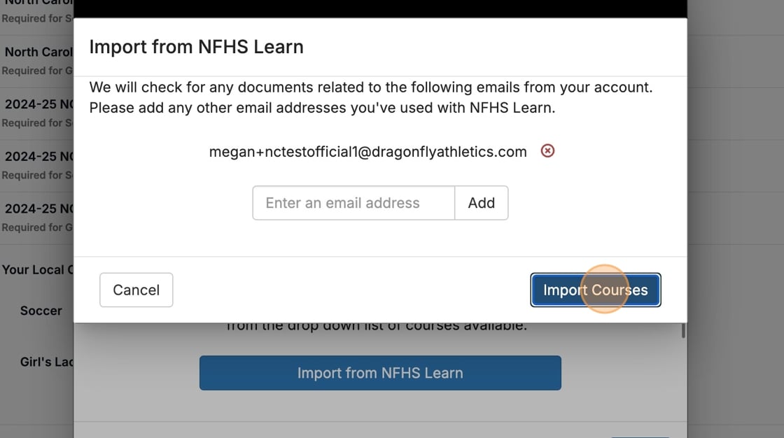 If you completed the course on the NFHS website, click Import from NFHS Learn