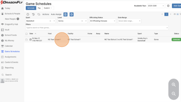 Go to Game Schedules in the left navigation menu.