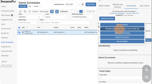 Create and Submit NCHSAA 5-Quarter Basketball Form