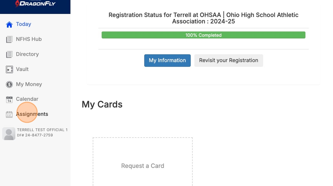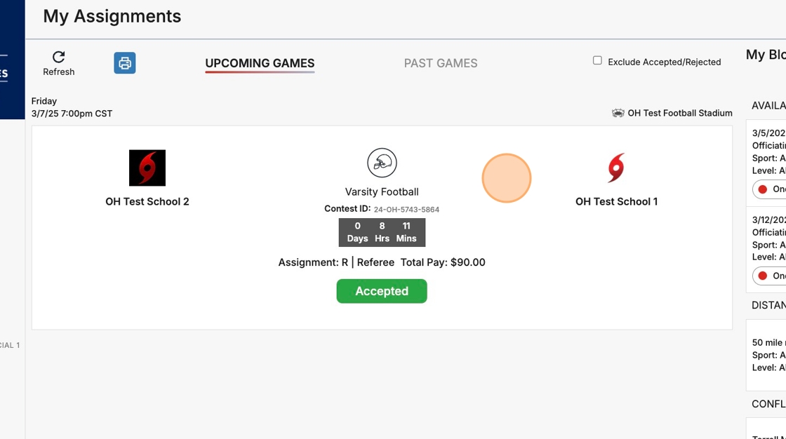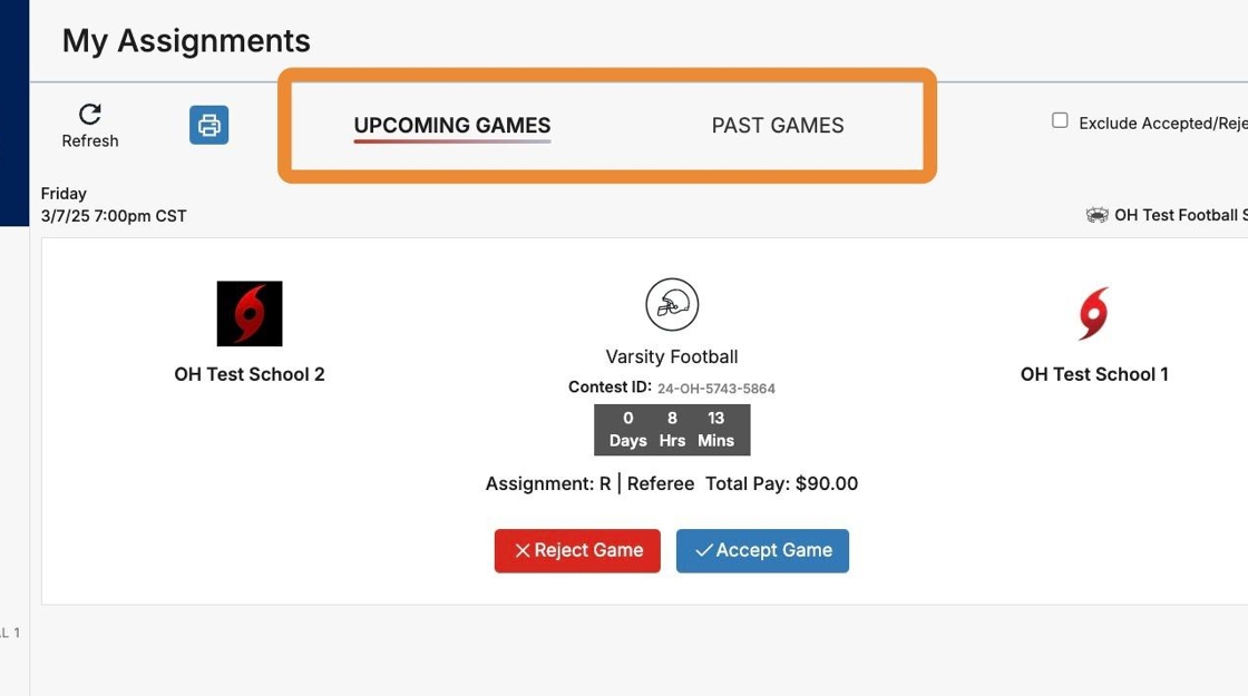 This is the Assignments page. You can view Upcoming or Past Games by clicking at the top.