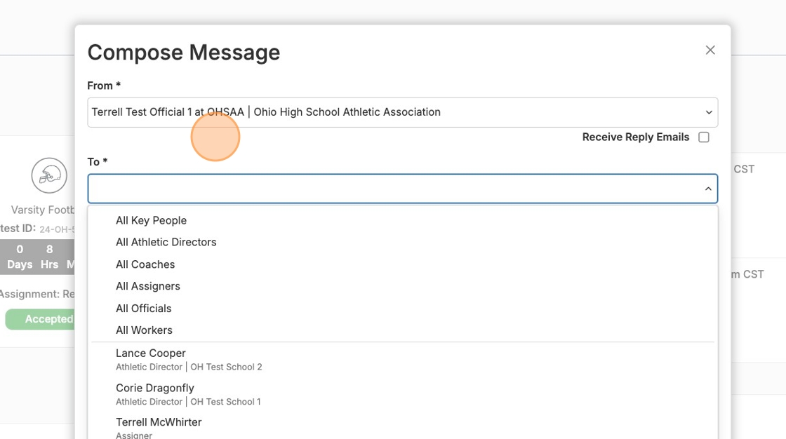 You can also send emails to key people on a game. To do so, first click the message icon to start a message.