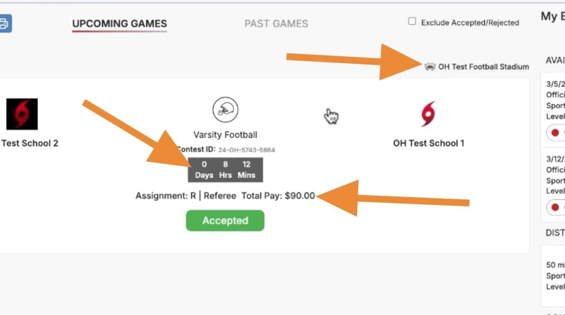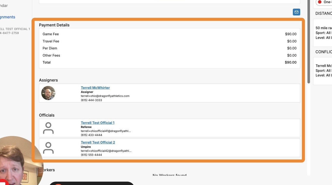 You can see a breakdown of all of your fees, as well as the assigner and other key individuals on the game.
