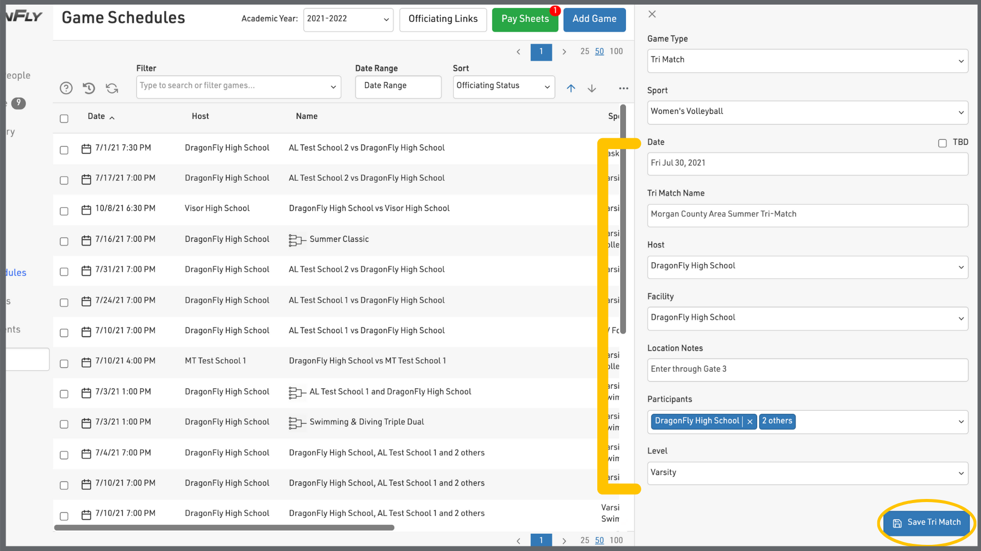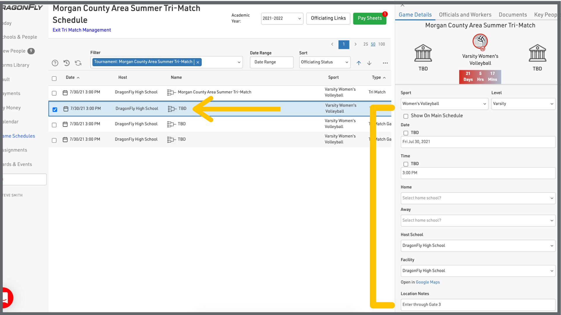 How Do I Add a Tri-Match to my Game Schedule? | DragonFly Athletics Help Center