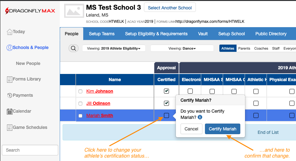 "How do I certify my athletes?" | DragonFly Athletics Help Center