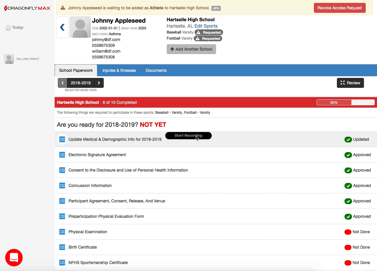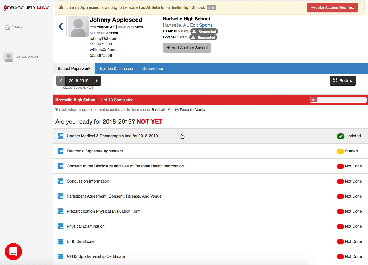 After you have created your Parent account and added your child to his/her school and teams, it's time to start adding your child's info. From your child's profile page, you can click the "School Paperwork" tab to get started.