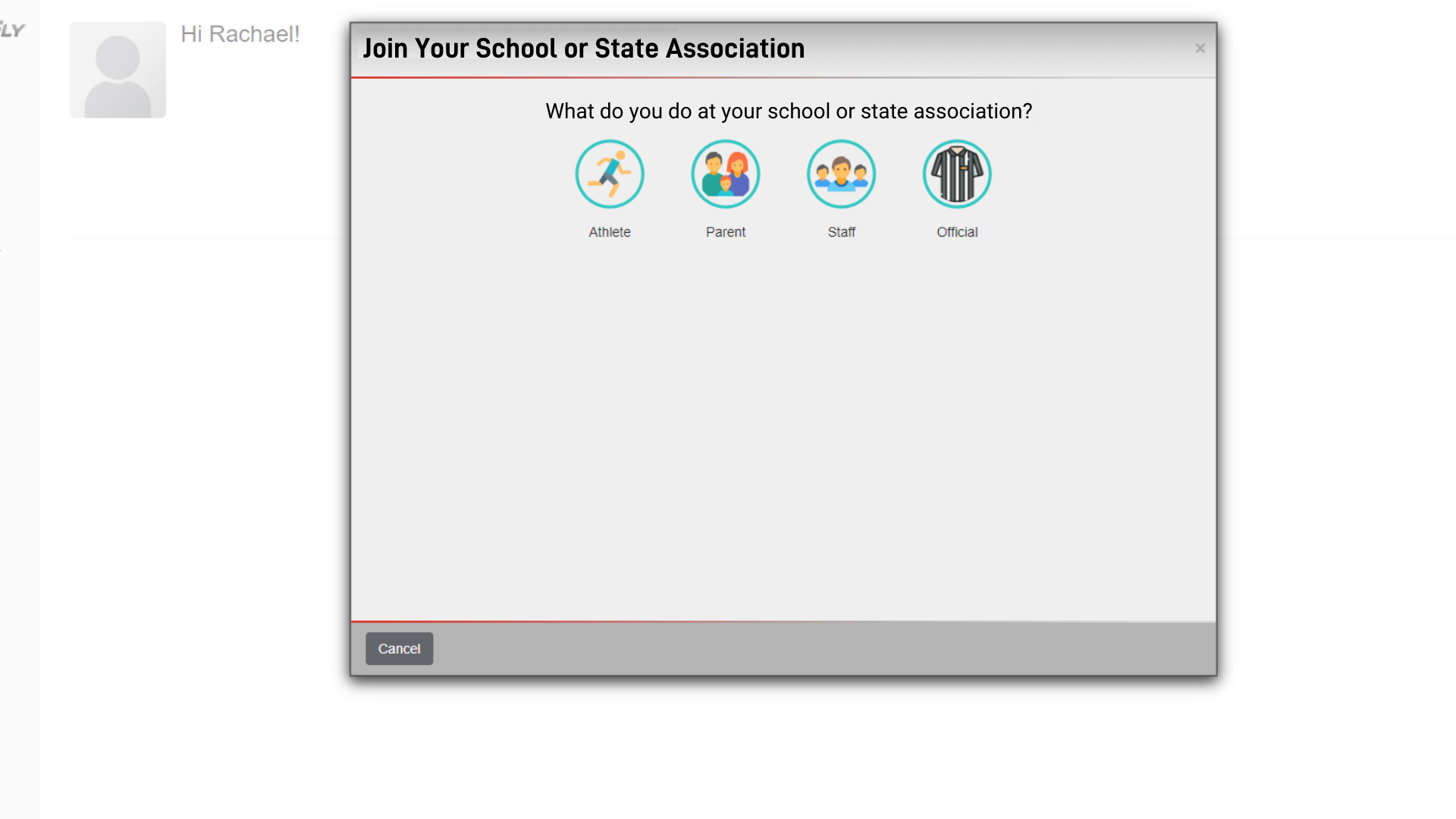 Step 2: Follow the prompts to select your role (i.e. athletic director, coach, administrator, parent, etc.).