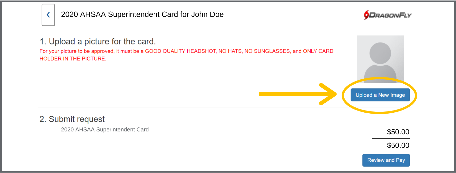 9. Upload a picture for your card. It must be a good quality headshot with no sunglasses or hats. Only the cardholder can appear in the picture.