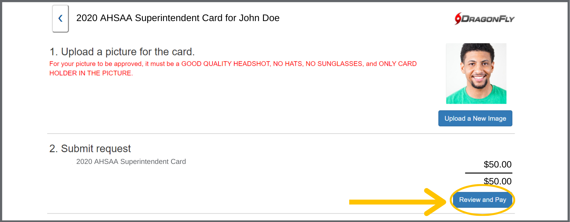 10. Select 'Review and Pay' and input your payment information to order your card.