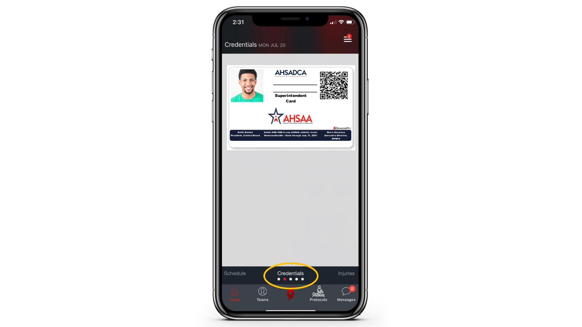 13. Once your card has been approved by both your school district and the AHSAA, you will receive a confirmation email and your digital credential will be available immediately in the DragonFly app. Log in with your email address and password, then swipe to the 'Credentials' menu.