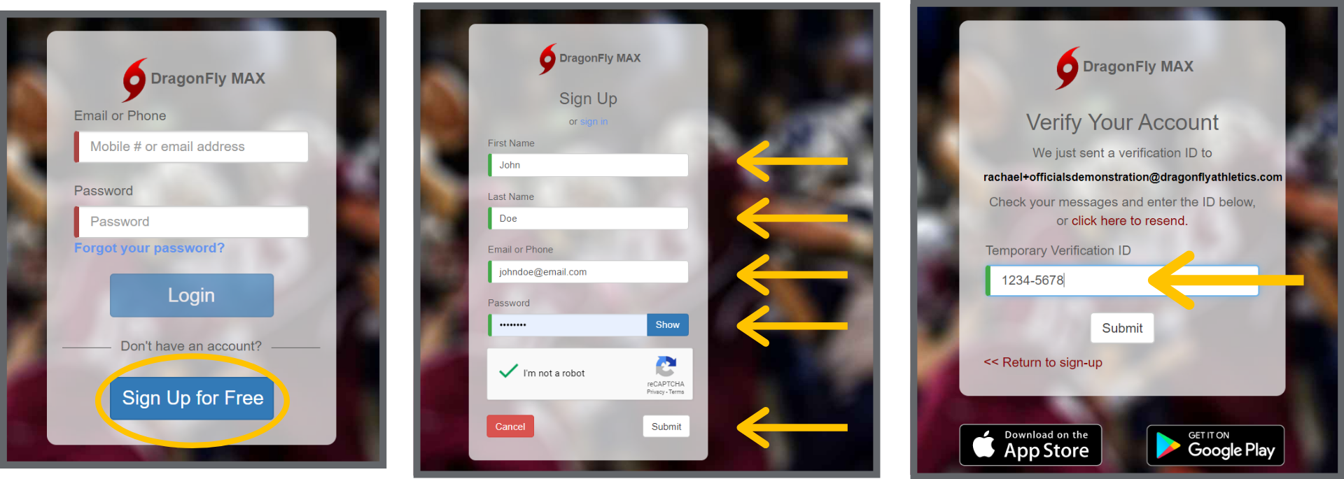 2. Select the 'Sign Up for Free' button, then submit your first name, last name, district email address and password. Check your email for a verification code and then submit that code on the next screen.