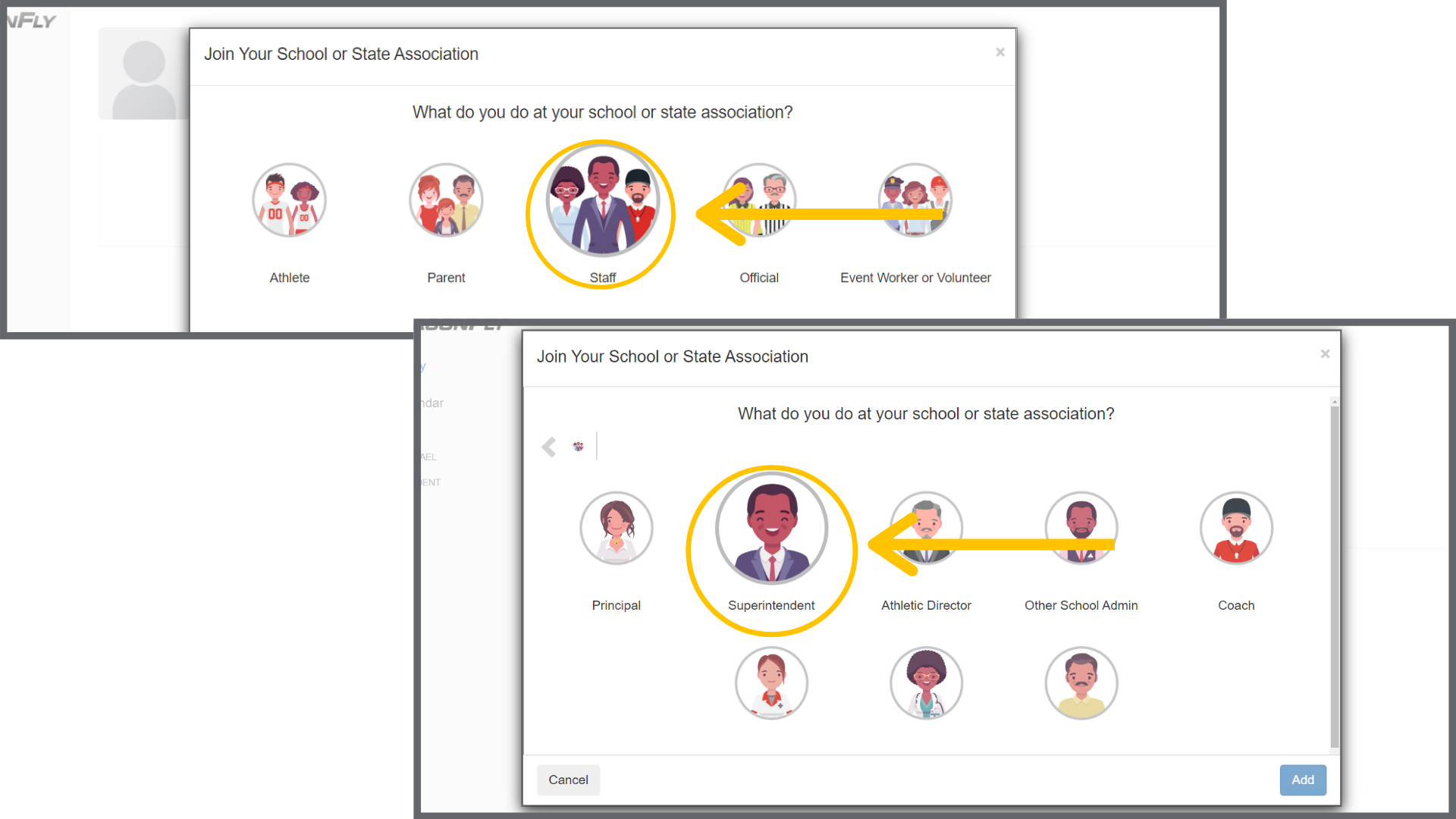 4. Select 'Staff' and then 'Superintendent' and then click the 'Add Superintendent' button in the bottom right corner.