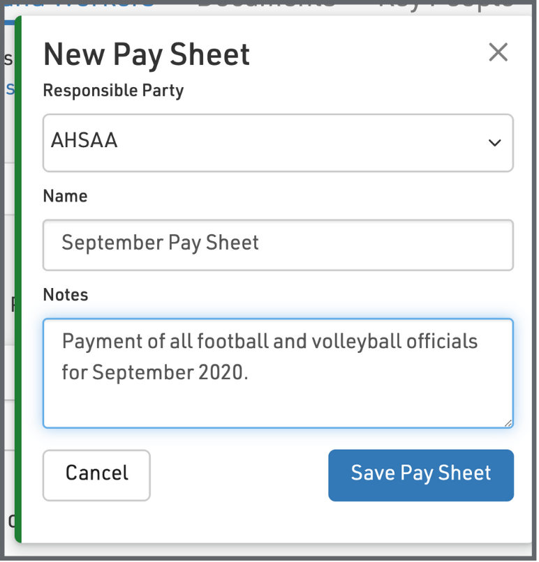 A Pay Sheet is like an online shopping cart, where you can organize and pay multiple people for multiple events.