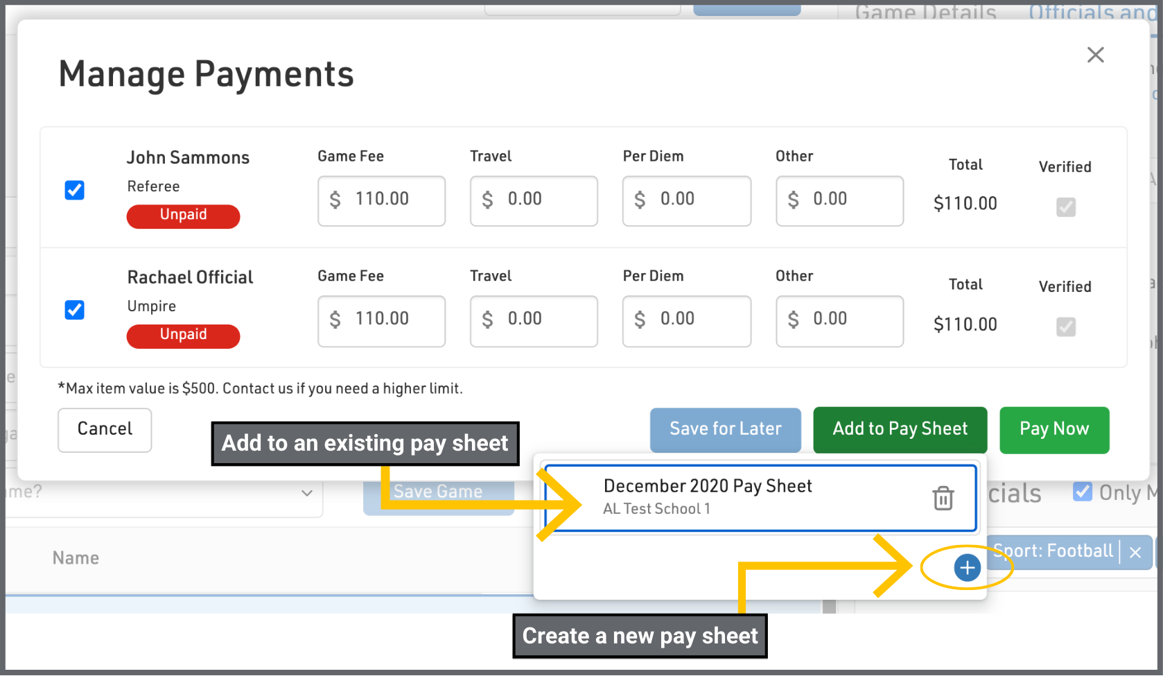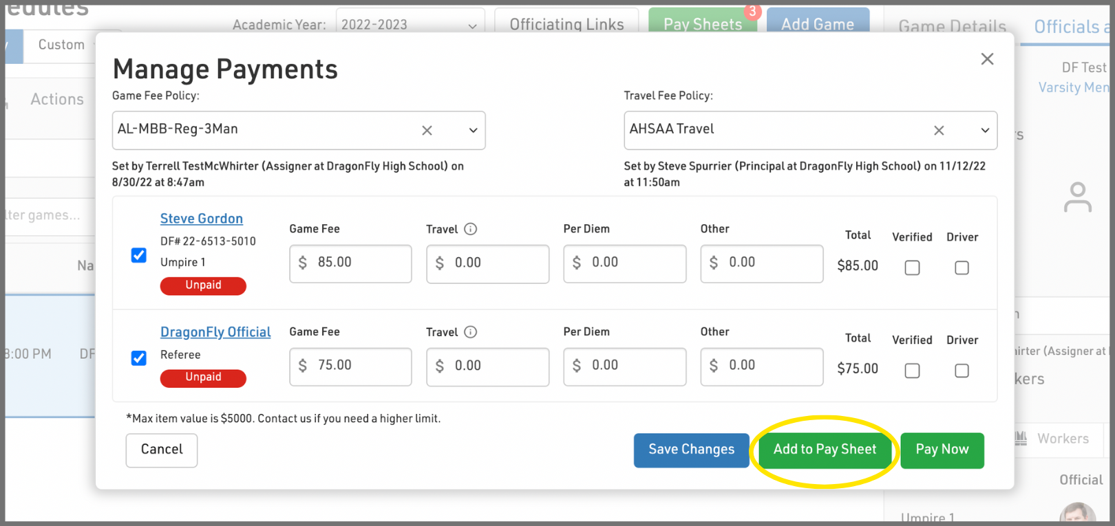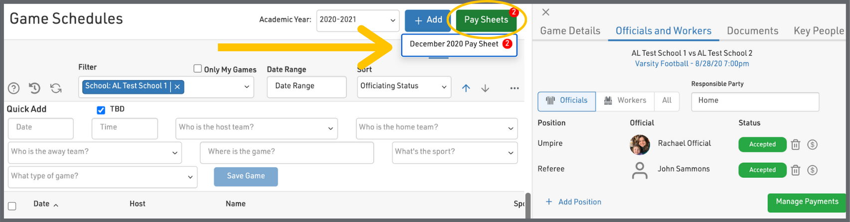 How do I pay officials and workers with a Pay Sheet? | DragonFly Athletics Help Center
