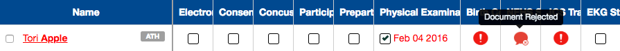 "How do I reject an uploaded Physical Exam (or other document)?" | DragonFly Athletics Help Center