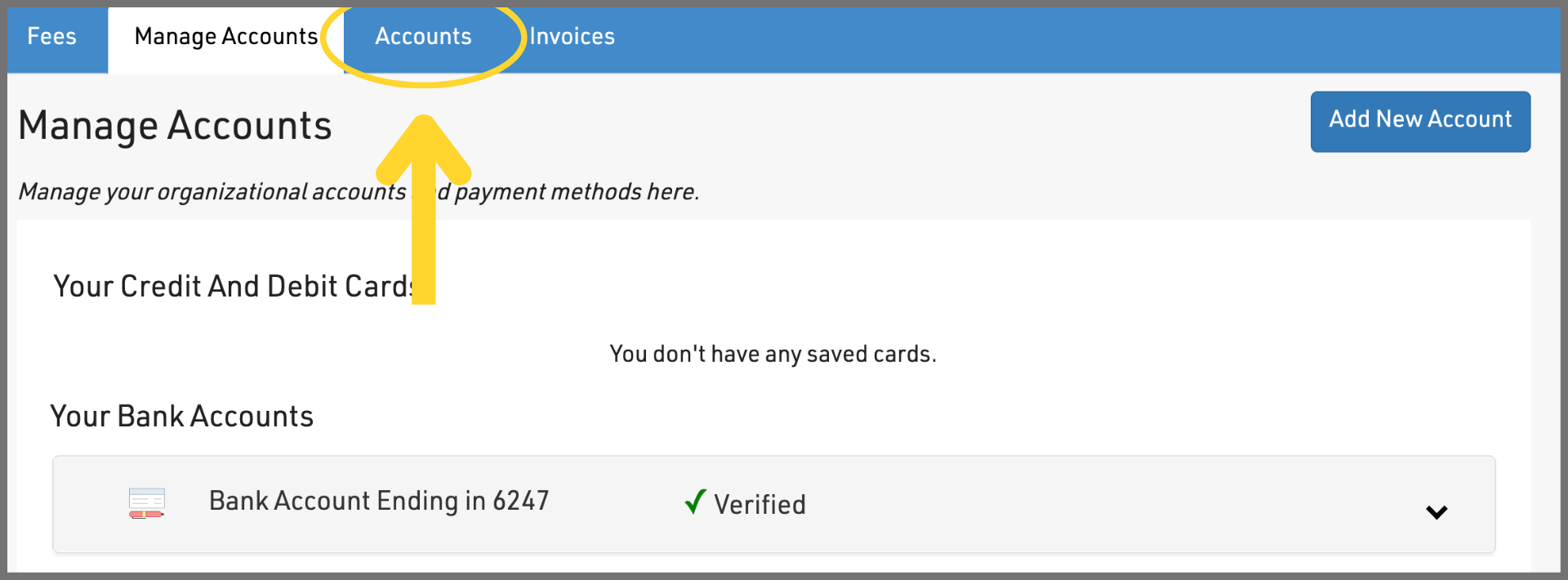 3. Select the 'Add New Account' button in the top-right corner.