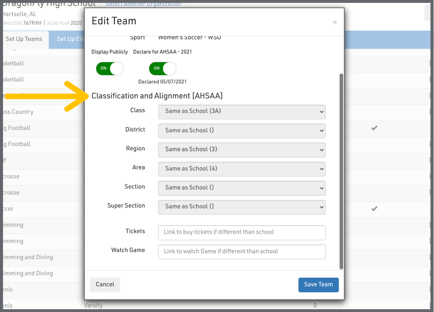 How do I update my school or team classification? | DragonFly Athletics Help Center