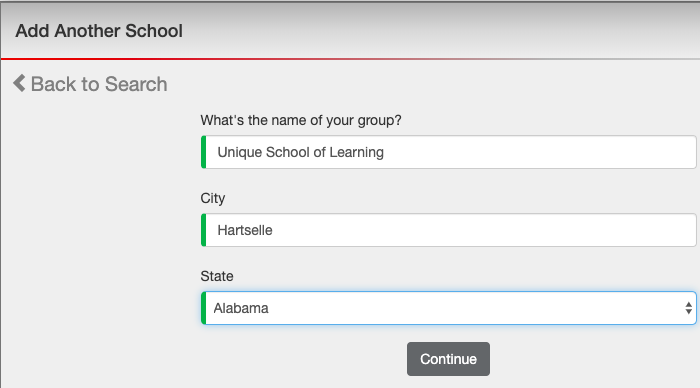 Step 5: Since the school you are creating is not in our school database, you will have to create it as if it were an organization other than a school first. We can add the official school details later.