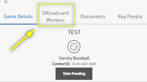 1. Click on a contest to open the game details and then click on "Officials & Workers" tab at the top