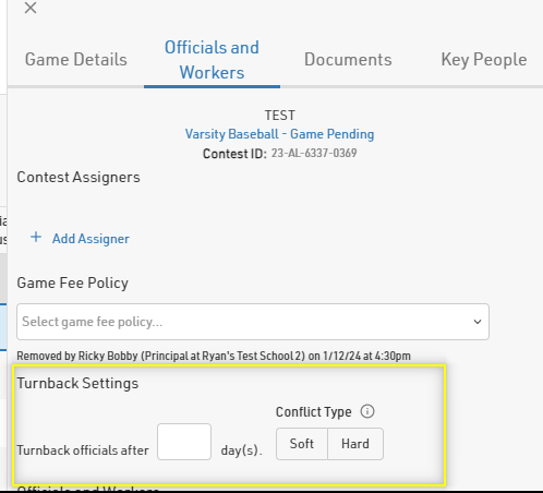 You can now set a "Turnback" policy on game assignments. A "Turnback" is a set amount of time officials/workers have to accept assignments.