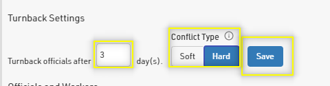 3. Enter the the number of days you want to set for the turnback and the conflict type (Hard or Soft), then press save