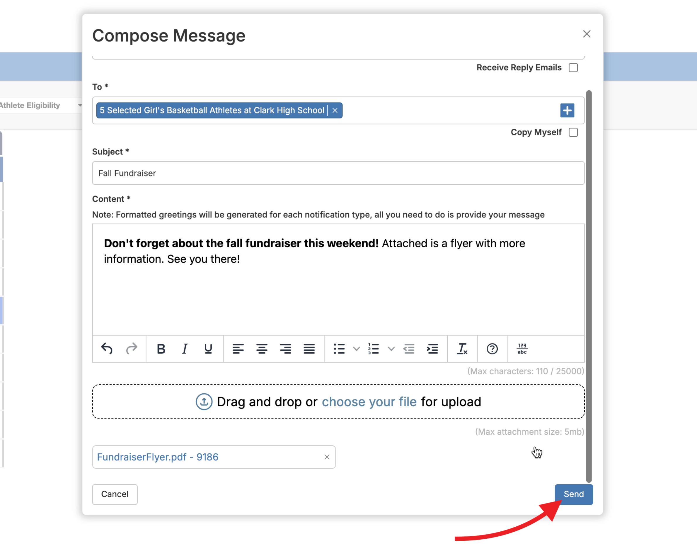 How to send an email through DragonFly | DragonFly Athletics Help Center