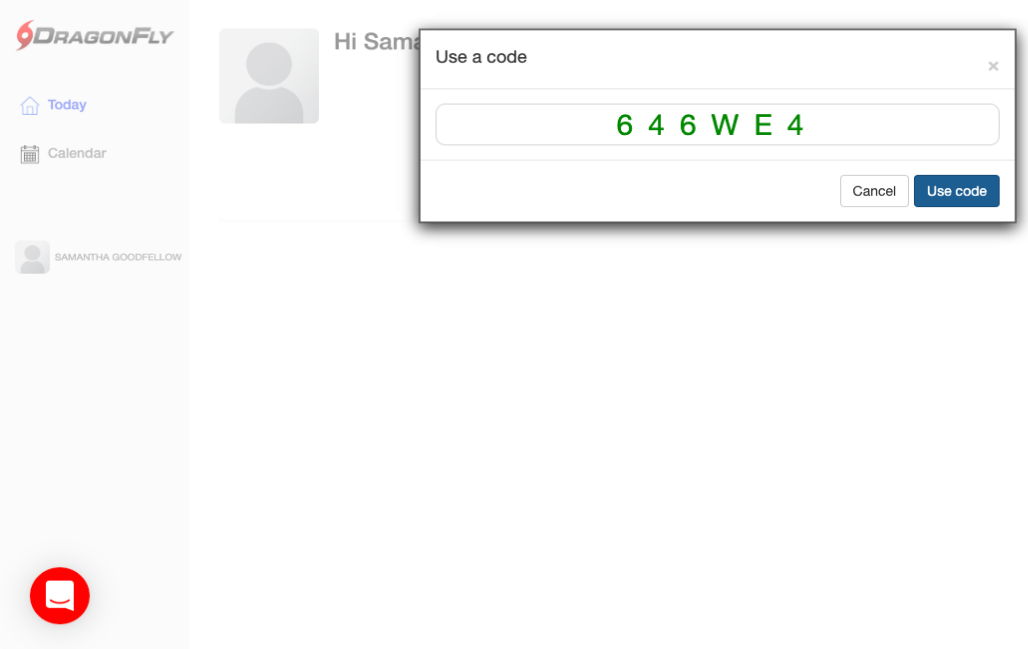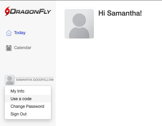 On the left side of the screen click on Your Name and select "Use a code" from the dropdown menu that appears.