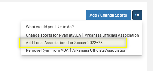 5. Select "Add Local Associations for (sport) 2022-2023"