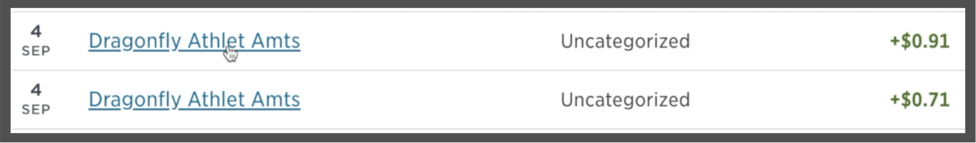 4. DragonFly will verify that you have access to the bank account by making two micro-deposits into your bank account. These small amounts are under a dollar each and they will appear in your bank account with the description 'DragonFly Athlet Amts'.
