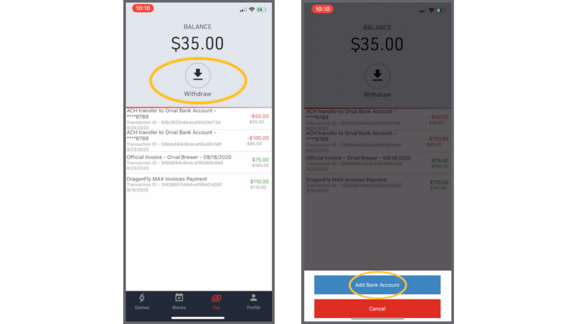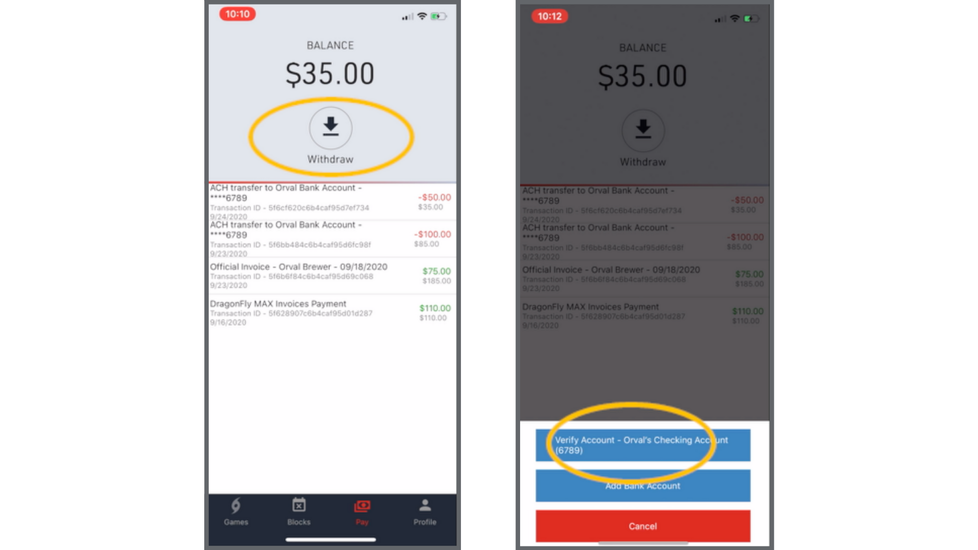 Officials & Game Workers: How do I view and transfer my money on the mobile app? | DragonFly Athletics Help Center