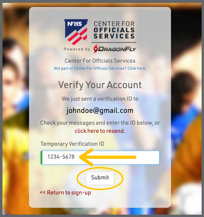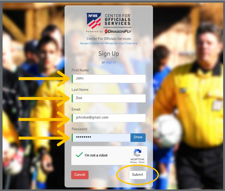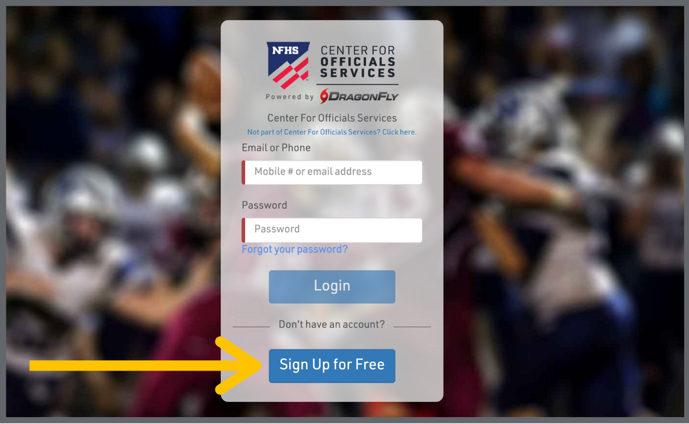 1. Visit the NFHS Center for Officials Services and select the 'Sign Up for Free' button.