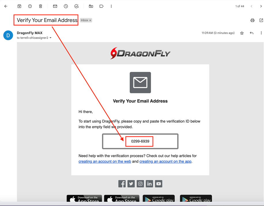3. You will immediately be sent a “Verify Your Email Address” email with a unique 8-digit code that you will need to enter to finish creating your account. Check your email for a verification code, then copy and paste that code into the field on the next screen