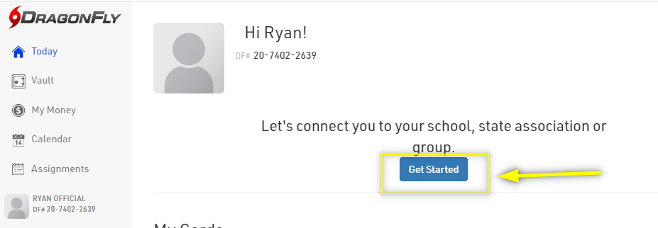 5. You will then land on the 'Today' page where you can click the 'Get Started' button to begin your registration as an official.