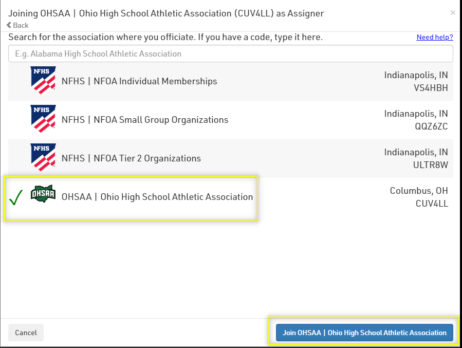9. Select the “OHSAA | Ohio High School Athletic Association” and click "Join"
