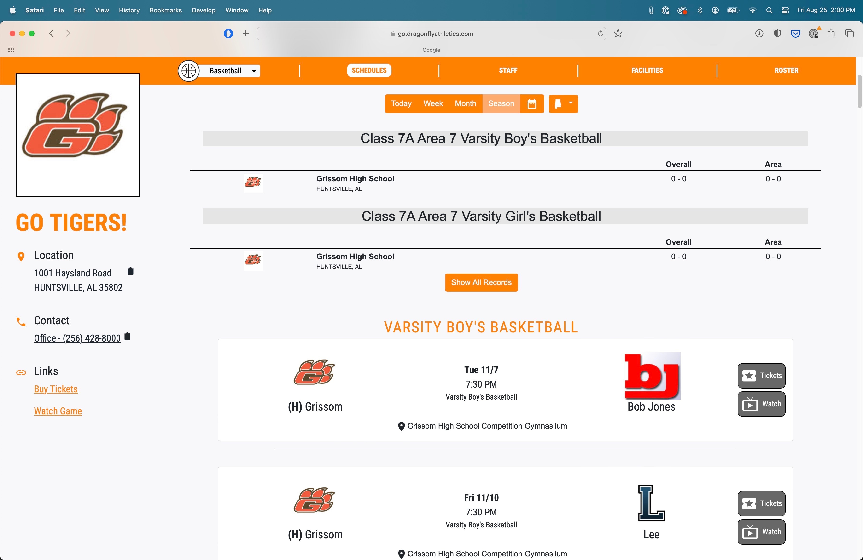 When your school is registered on DragonFly, you can use our public facing game schedule site- go.dragonflyathletics.com