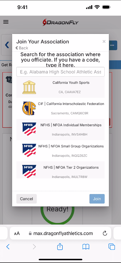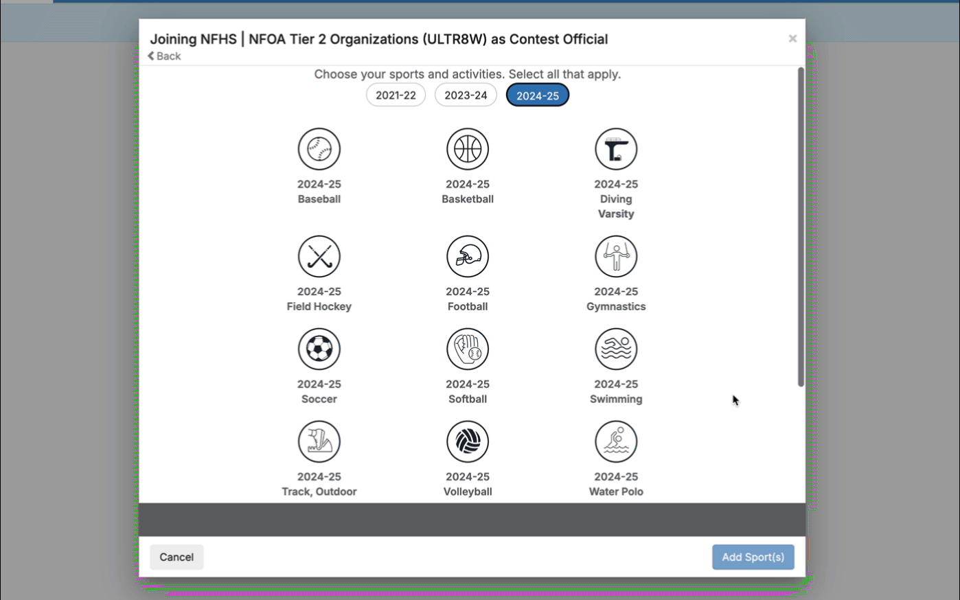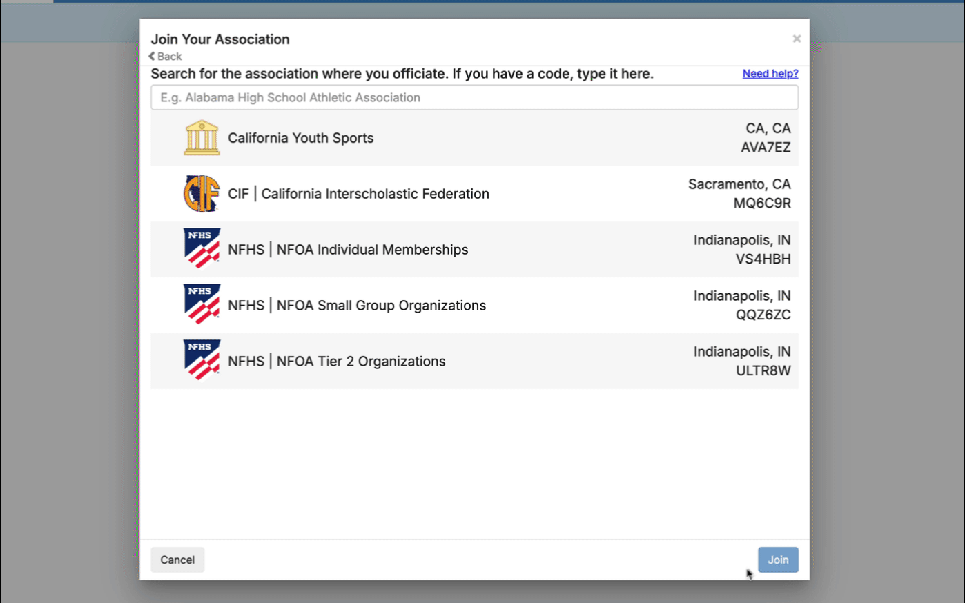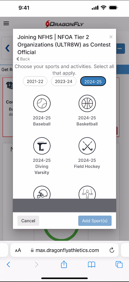 Register as an official in a NFHS Tier 2 Organization | DragonFly Athletics Help Center
