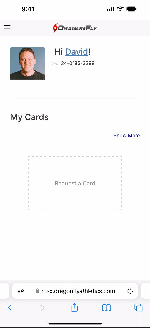Log into your account at max.dragonflyathletics.com. Click on your name in the left-hand navigation bar, and select 'My Info'.