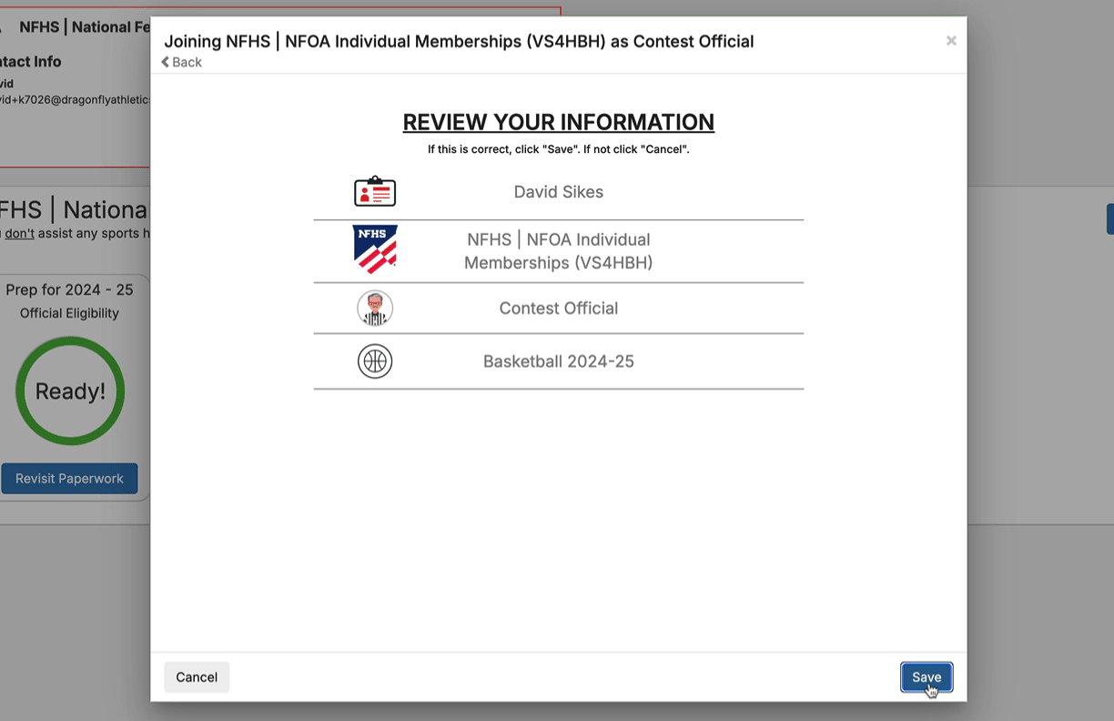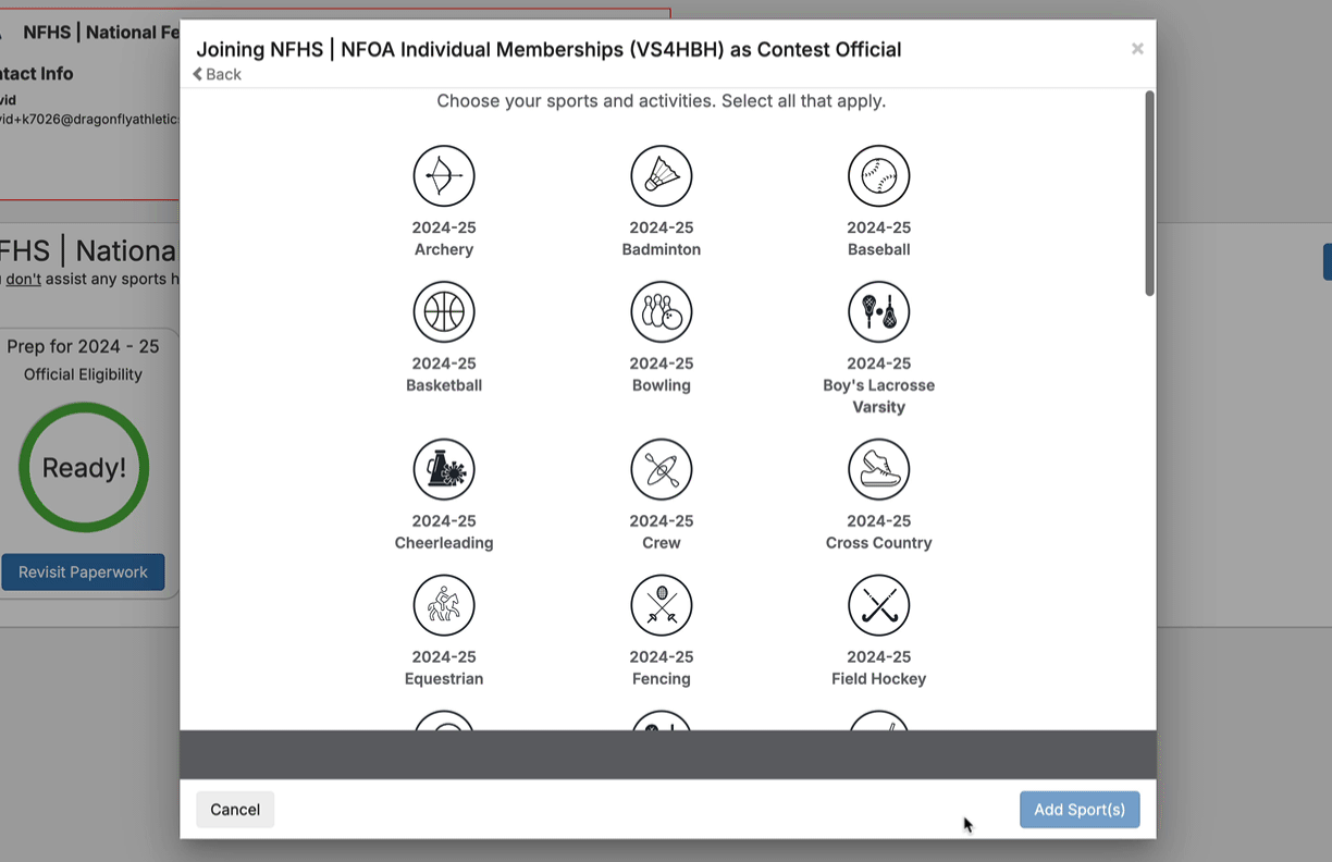 Register as an official with the NFHS as an Individual | DragonFly Athletics Help Center