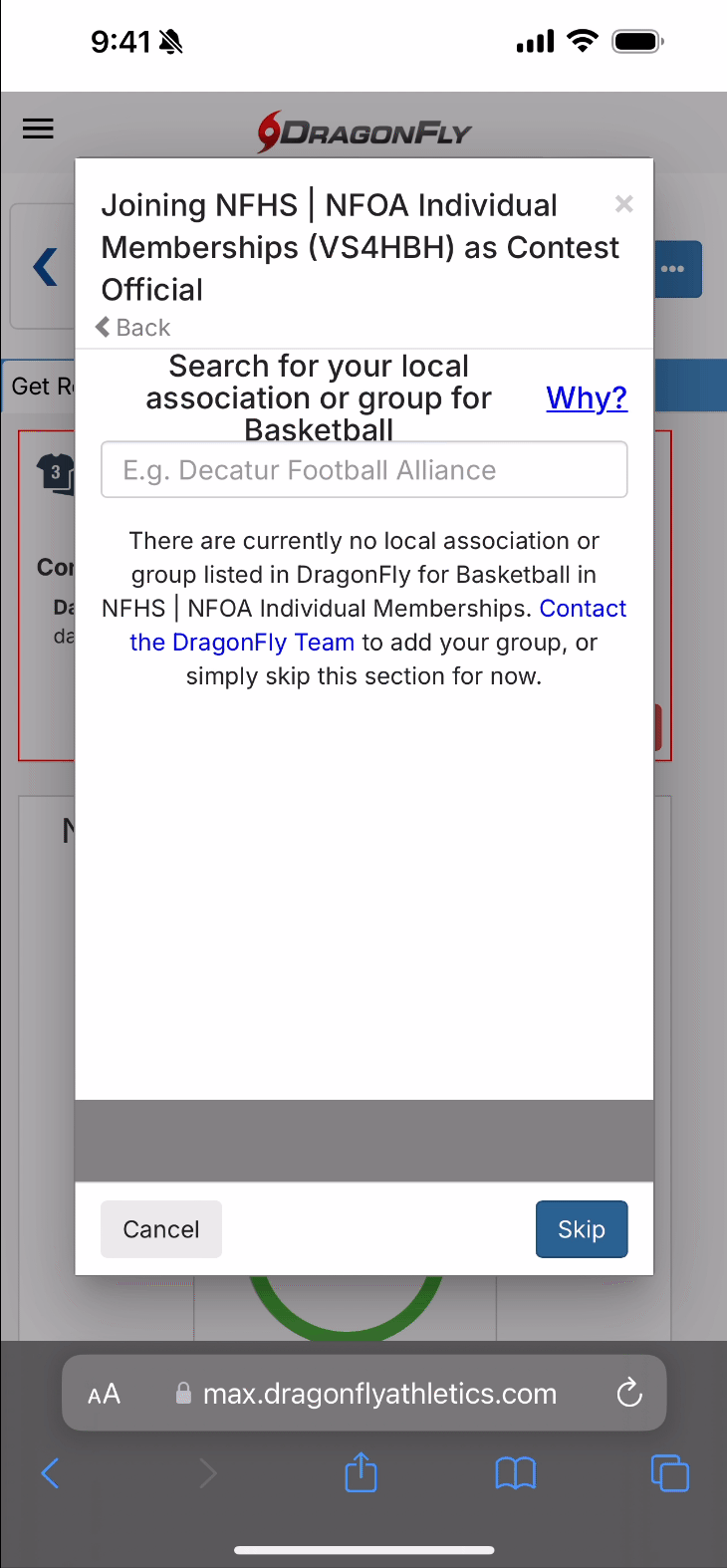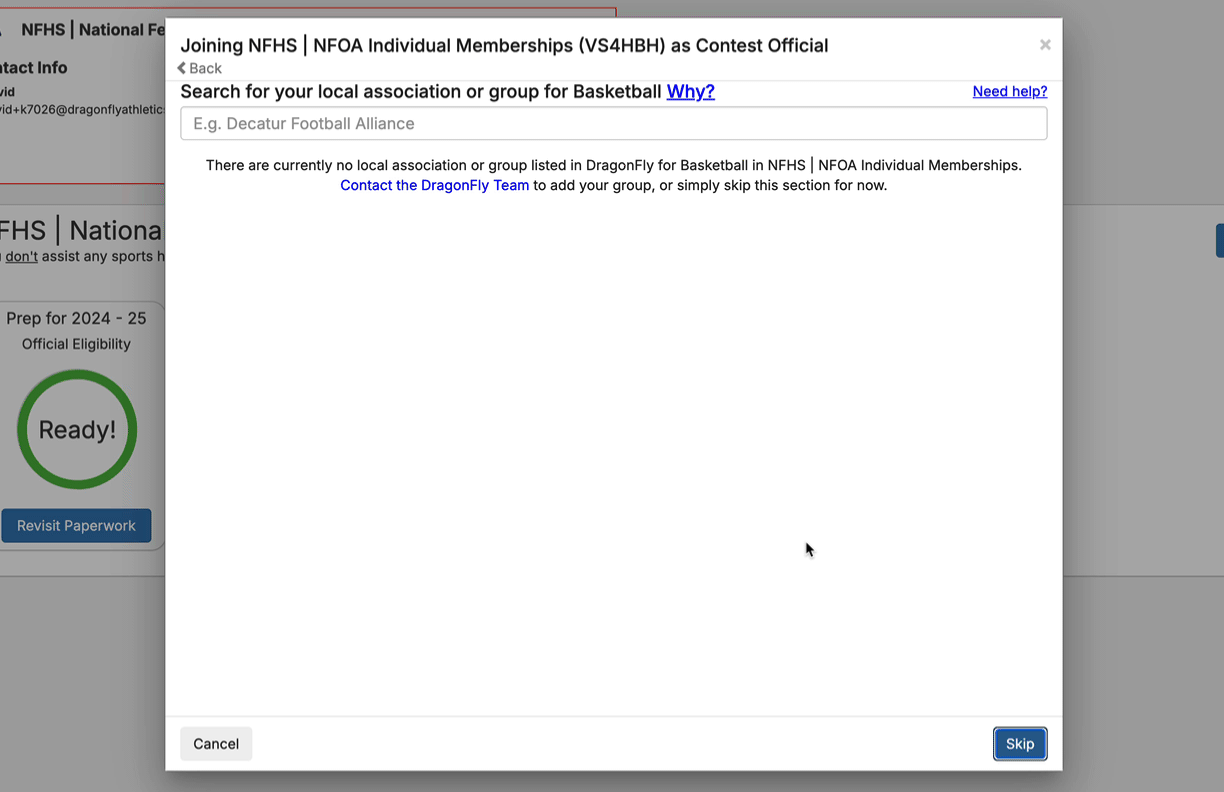 Select your local association or group, if applicable. Otherwise, click 'Skip'.