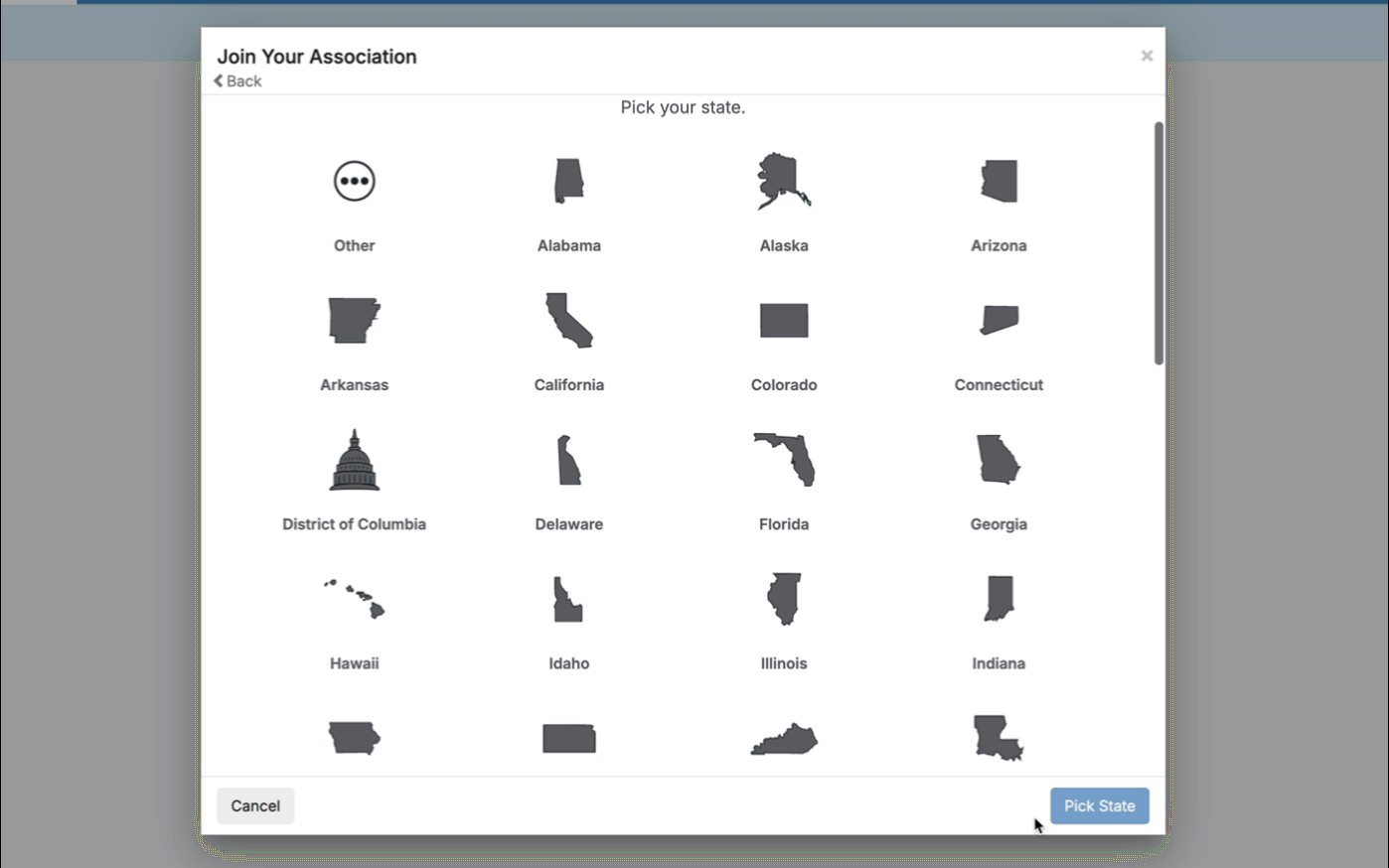 Select the state you are located in, then confirm your selection on the bottom-right corner.
