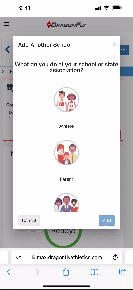 In the top-right corner, click the dot menu to reveal '+ Add Another School'.